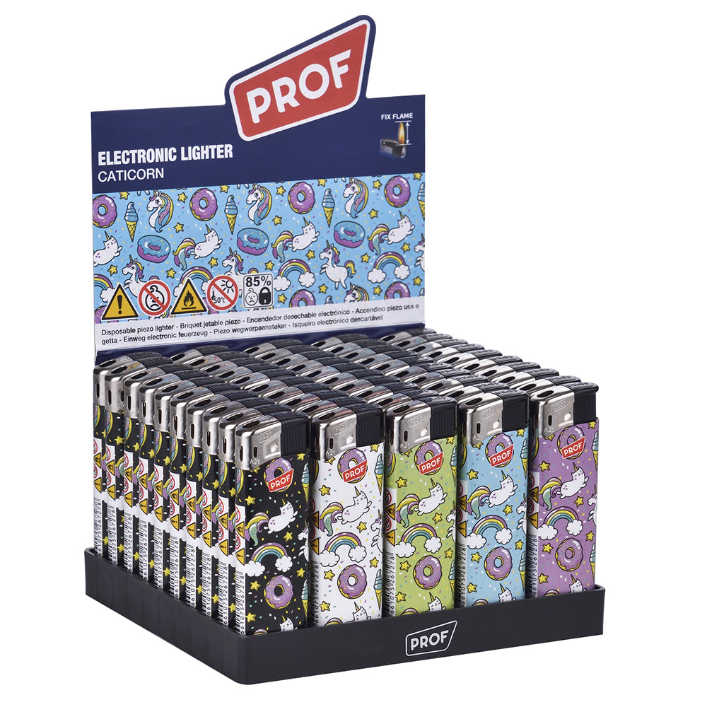 El Encendedor Prof Caticorn combina fantasía y diversión en un diseño único lleno de color. Con ilustraciones de adorables gatos-unicornio, arcoíris y estrellas, este modelo aporta un toque alegre y original a tu colección. Ideal para quienes buscan un encendedor funcional con un estilo diferente y desenfadado.